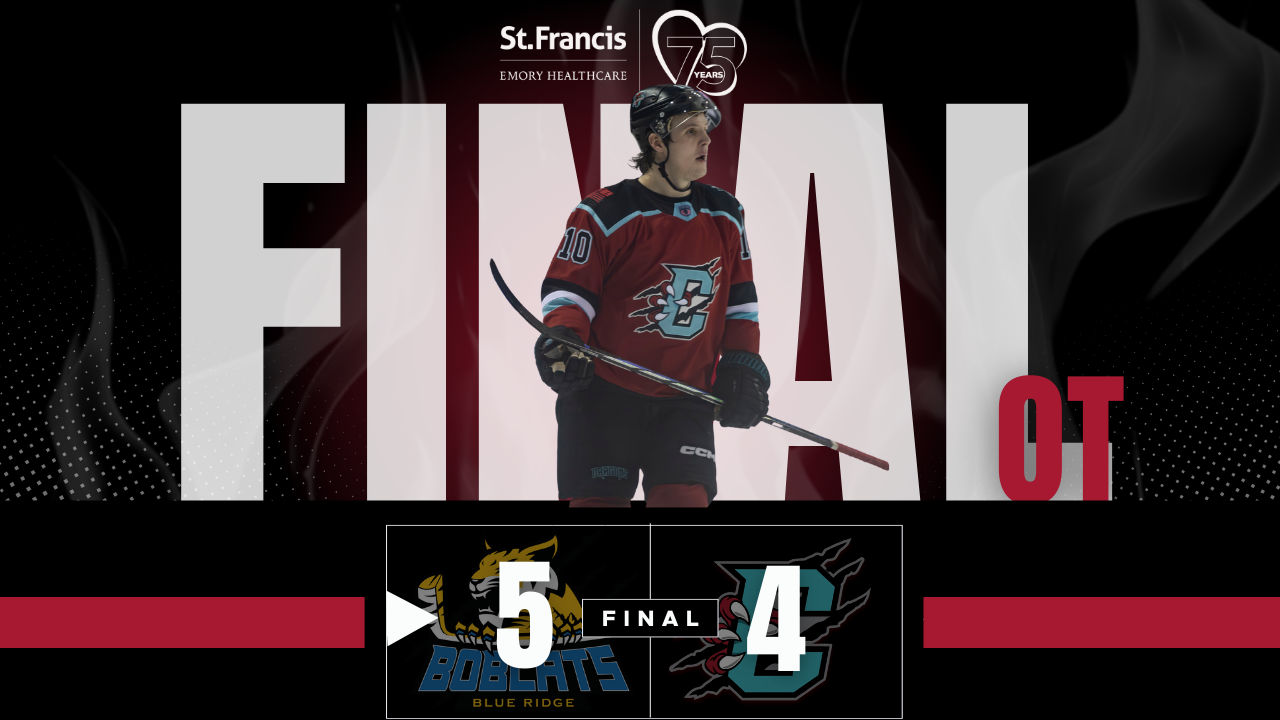 COLUMBUS, GA. - The Columbus River Dragons fell to the Blue Ridge Bobcats, 5–4, in overtime on Friday night at the Columbus Civic Center.