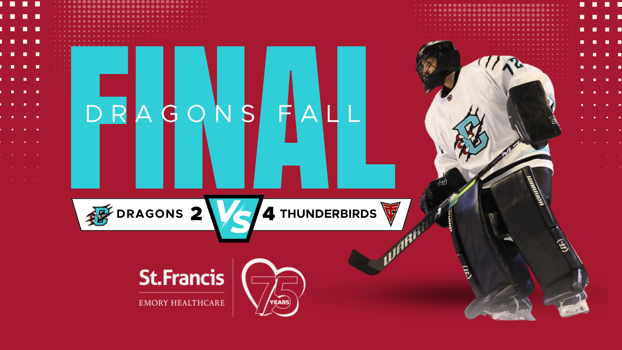 WINSTON-SALEM, N.C. — December 13, 2025 — The Columbus River Dragons were defeated by the Twin-City Thunderbirds, 4–2, on Saturday night at the Winston-Salem Fairgrounds in Winston-Salem, North Carolina.
