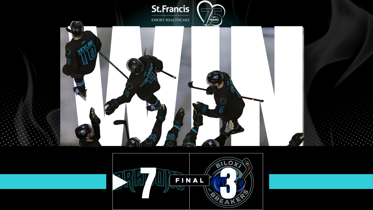 BILOXI, MS. —The Columbus River Dragons defeated the Biloxi Breakers 7 to 3 on Saturday night at the Mississippi Coast Coliseum in Biloxi, Mississippi.
