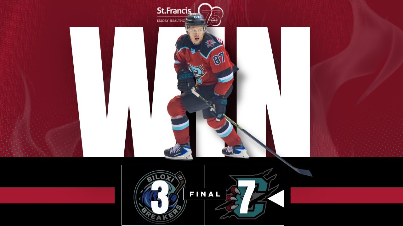 In the middle frame, the Breakers reclaimed the lead, scoring two unanswered goals, first from Trey Fischer, then again from Kyle Heitzner.