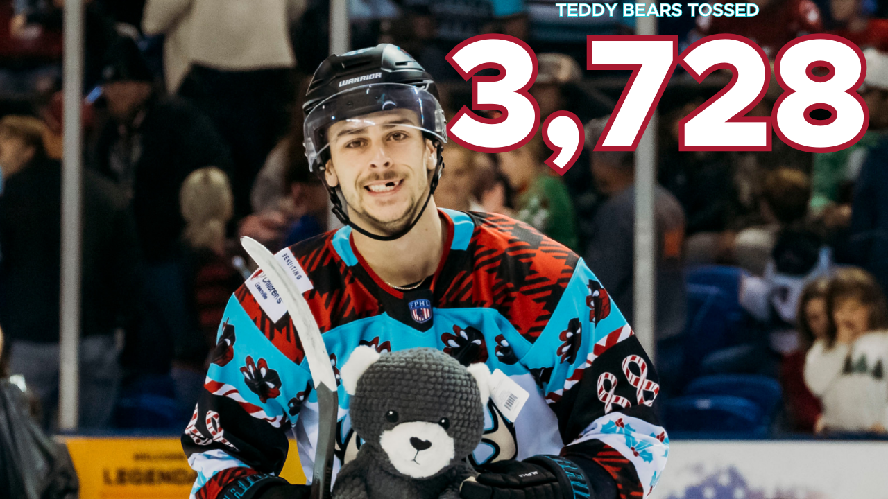 COLUMBUS, GA. — December 10, 2025 — The Columbus River Dragons announced today that the total number of stuffed animals collected during Saturday night's Teddy Bear Toss was 3,728.